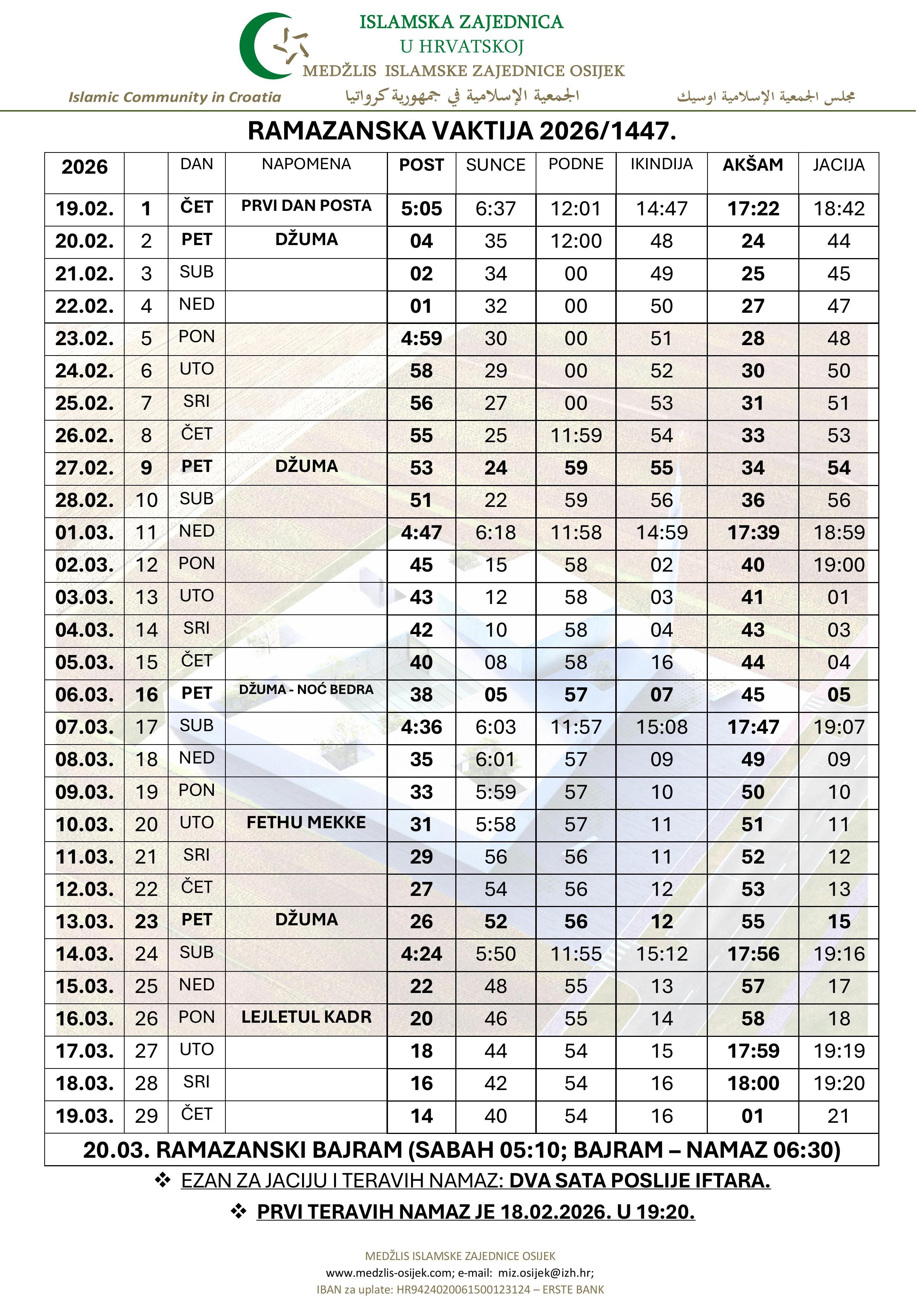Ramazansku vaktiju za MIZ Osijek preuzmite u obliku slike.